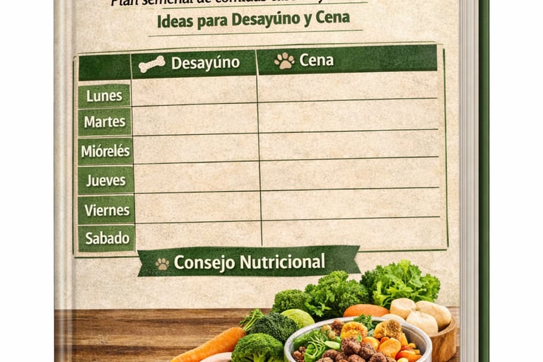 guía visual y resumida para planificar la alimentación de tu perro durante toda la semana, ideal para dueños ocupados que quieren cuidar su salud sin complicaciones